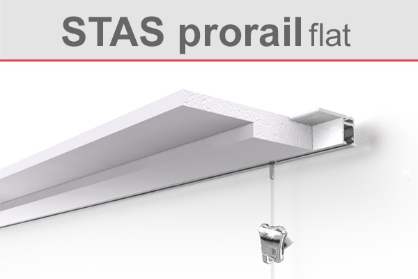 Die prorail flat ist eine eine Deckenschiene, ein überaus stabiles Profil, das dennoch nahezu unsichtbar im Stuck oder in